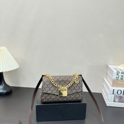 【棕色】Michael Kors MK 非常經典大氣的棕拼1ogo Lita 系列鏈條包